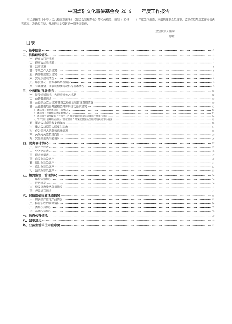 中国煤矿文化宣传基金会2019年度工作报告 来源:中国煤矿文化宣传基金会 作者: 时间:2026-03-10 【字体:小 大】 中国煤矿文化宣传基金会2019年度工作报告(以下简称“报告”)已经登记管理机关审查通过,根据《基金会管理条例》规定,现将报告全文公布。 分享到: 【打印正文】