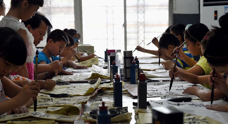 暑假期间,矿区驻地不少家长把孩子送进了文体中心文化宫培训班,接受舞蹈、音乐、美术、书法等艺术方面的培训。