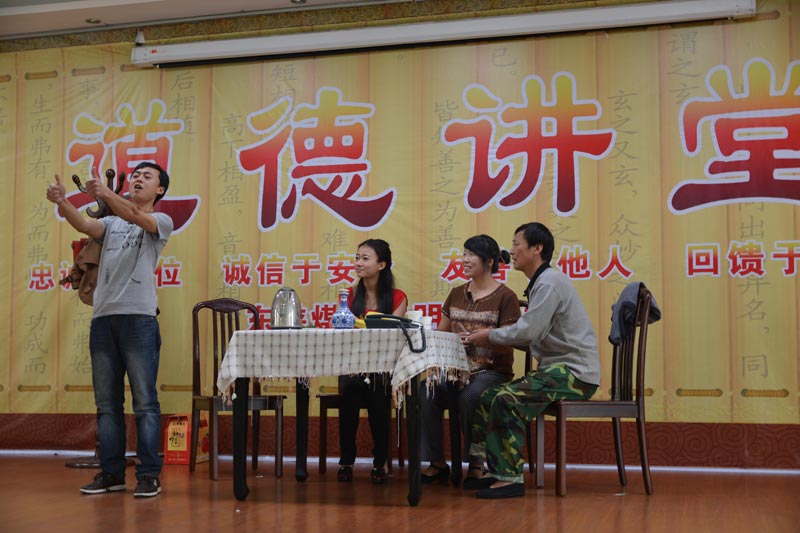 10月28日,华亭煤业集团公司第五期道德讲堂在东峡煤矿生产调度楼五楼会议室举行,来自34个二级单位的职工代表共计二百二十多人参加了活动。本期道德讲堂主题为“做提质增效的华煤人”,共分八个环节,其中以“学模范”,“讲故事”两个环节最为亮点,主持人话音刚落,广大干部职工一起随着大屏幕走进了张胜祥的故事,张胜祥是东峡煤矿综采一队采煤机司机,作为一名农民协议工,他在采煤机司机的岗位上刻苦学习,一门心思钻研技术,参加技能大赛锲而不舍,功夫不负有心人,在2013年集团公司第十一届技能大赛中取得了第三名,同年11月转正,今年9月份获得集团公司第二届“感动华煤十大道德模范人物”。他精湛的技艺和钢铁般的意志,无不展示着新一代华煤矿工的大美风采。紧接着由东峡煤矿选装队排练的小品《恩情》,用亲情演绎道德的力量,通过讲述身边的道德故事,感悟道德的力量,赢得了台下阵阵掌声,并鼓舞广大干部职工的干劲,在当前煤炭市场低迷期,更应该坚定信心,团结一致,共渡难关。