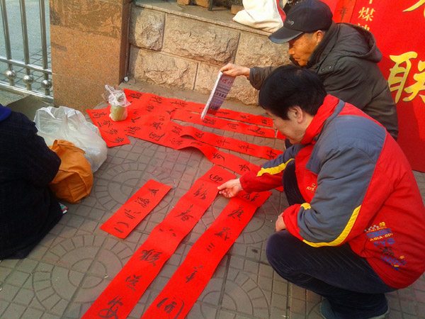 春节前为职工家属义写春联这一活动,已经连续进行了17年了,业已形成了一个传统,很受人们的欢迎。由于《平顶山晚报》事先做了信息发布,所以已经有不少人在义写点等候,书法家们把书案一摆,便被围得水泄不通。在义写的两个小时里,书法家们共书写送出春联350多对,虽说个个都是满头大汗,可能为大家送上一份新春祝福,看到人们拿到春联后喜悦的神情,都说从心里得到了一份满足。