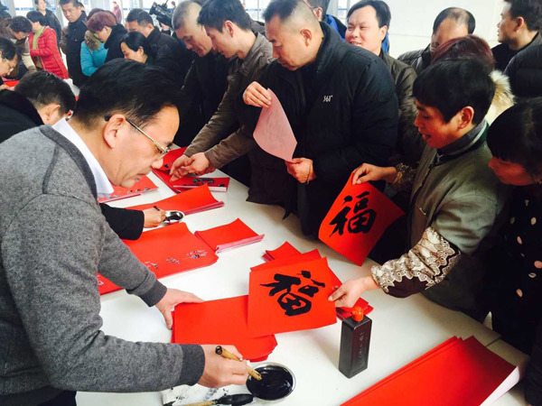 新春佳节来临之际,为弘扬传统文化,营造喜庆祥和的新春氛围,淮北矿区书法家协会举办了“书安全春联、送新春祝福”进矿区活动。从2月1日至5日,矿区书法家们先后奔赴孙疃矿、金园房地产、芦岭矿、朱仙庄矿、神源煤化工、朱庄矿、海孜矿、临涣矿、淮选厂、公司机关等单位为职工书写安全春联万余幅,给矿区职工家属送去新春的美好祝福,受到矿区职工家属的热烈欢迎。