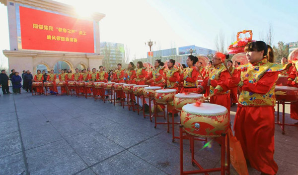 同煤集团威风锣鼓奏响春天的音符