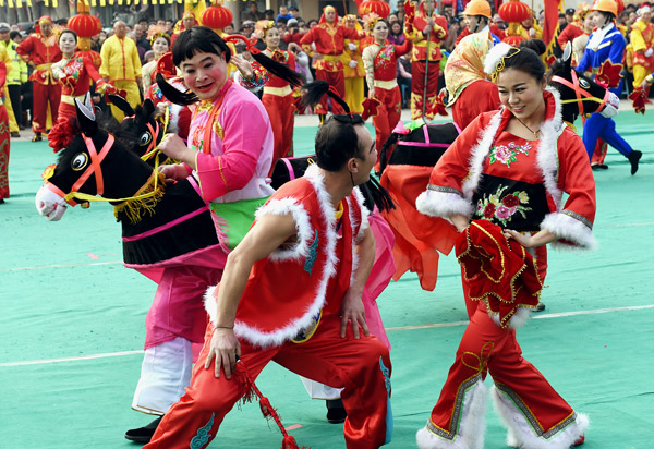 2月22日,兖矿集团公司2016年民间艺术展演比赛在游泳馆前火热举行,由8家矿处单位自编自演的民间艺术节目吸引了广大职工家属观看。集团公司有关部门负责人同职工家属一道兴致勃勃地观看了演出。