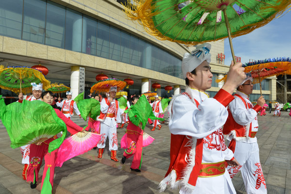 欢快的锣鼓敲起来、喜庆的秧歌闹起来,浓浓的新春祝福瞬间蔓延。下午三时,公司办公楼前锣鼓喧天、人声鼎沸,由兄弟单位员工表演的陕北大秧歌也热闹非凡的“扭”了起来。精彩的秧歌表演吸引了广大员工和家属们的目光,大家纷纷驻足观看、热闹点评。“不错、真不错,今年的十五真热闹啊,这秧歌扭的还真好看,真精神”。