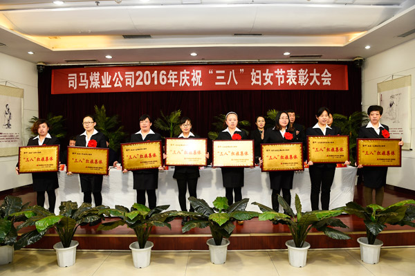 3月8日上午,由该公司工会副主席郭慧带队,组织参加了潞安集团2015年度“三·八”表彰会。在会上,司马煤业工会女工部荣获潞安集团“模范工会女职工委员会”、“模范工会女职工家属协管安全委员会”荣誉,该公司锅炉化验班荣获集团“十大优秀女职工标兵岗”荣誉,该公司女工冯媛荣获集团“巾帼标兵”荣誉,申丽芳荣获集团公司“安全协管标兵”荣誉,洗煤厂郝秋霞家庭荣获集团“文明和谐家庭”荣誉称号等。另外,该公司公寓服务队荣获了山西省“巾帼文明岗”荣誉称号。此外,该公司还精选出十名体育健将代表潞安集团参加了长治市妇联组织的庆“三•八”妇女健身运动会女职工趣味活动,并获得优秀组织奖。