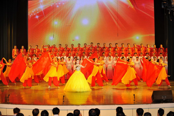 日前,冀中能源峰峰集团公司迎国庆“祖国颂——高举红旗向前进”合唱晚会在峰峰集团会堂举行,集团公司领导同近千名职工群众欢聚一堂,庆祝共和国67周年华诞。