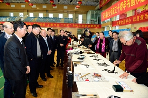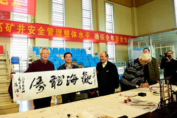 此次活动共邀请省、市以及潞安集团的20余名书画家参加,其中有享誉省内外的著名作家、书法家王东满先生,篆刻家、书法家、画家方胜先生,长治市美协主席孟多昕,长治市书协主席程旭清,长治市青年书协主席史留俊等。上午9点整,展览正式拉开序幕,书画家们首先参观了展览。本次展览作品题材丰富、形式多样,从整体作品上看,行草隶篆皆有,国画作品山水、花鸟俱全。只见正楷方正规矩,篆书刚劲有力,行书飘逸清秀,草书有万马奔腾;美术作品山水大气磅礴,荷花水墨清香飘逸,写意画中寓含深意。整个展厅真可谓书香飘远,翰墨传情。再看摄影作品,有建矿历史照片,十年辉煌成就图片,也有摄影家走进矿区采风所拍摄的优秀作品。展览照片完美的构图、饱满的色彩,如身临其境。在笔会现场,随着王东满先生的一幅“惠风和畅”落墨,众书画家正式开始了现场笔会。只见他们臂运千金,笔走龙蛇,行书、楷书、草书、隶书、山水画各显其能,一幅幅苍劲有力的作品展现在眼前,引得大家啧啧称赞。此时,工作人员有的准备纸张,有的挑选内容,有的扶墨拉纸,有的整理成品,各行其事,规范有序。经过一上午切磋交流,书画家们畅舒心怀,各表其意,书写司马煤业公司十年发展成就,讴歌矿工奉献精神,为该公司成立十周年纪念活动锦上添彩。