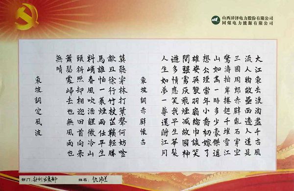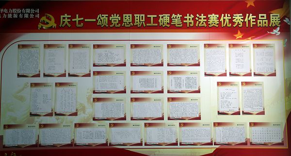 为庆祝建党96周年,弘扬中华民族优秀文化,讴歌党的光辉历程和丰功伟绩,展示员工爱党爱国、爱岗敬业的精神风采,日前,同煤集团漳泽电力公司工会举办了“迎七一、颂党恩、书党情”员工硬笔书法比赛。