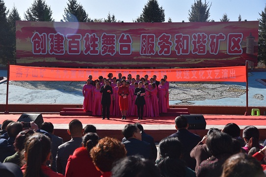 本次演出不仅丰富全矿老年朋友们的节日生活,营造和谐的矿区氛围,受到该矿老年朋友的喜爱。图为文艺演出配乐诗《我的祖国》。
