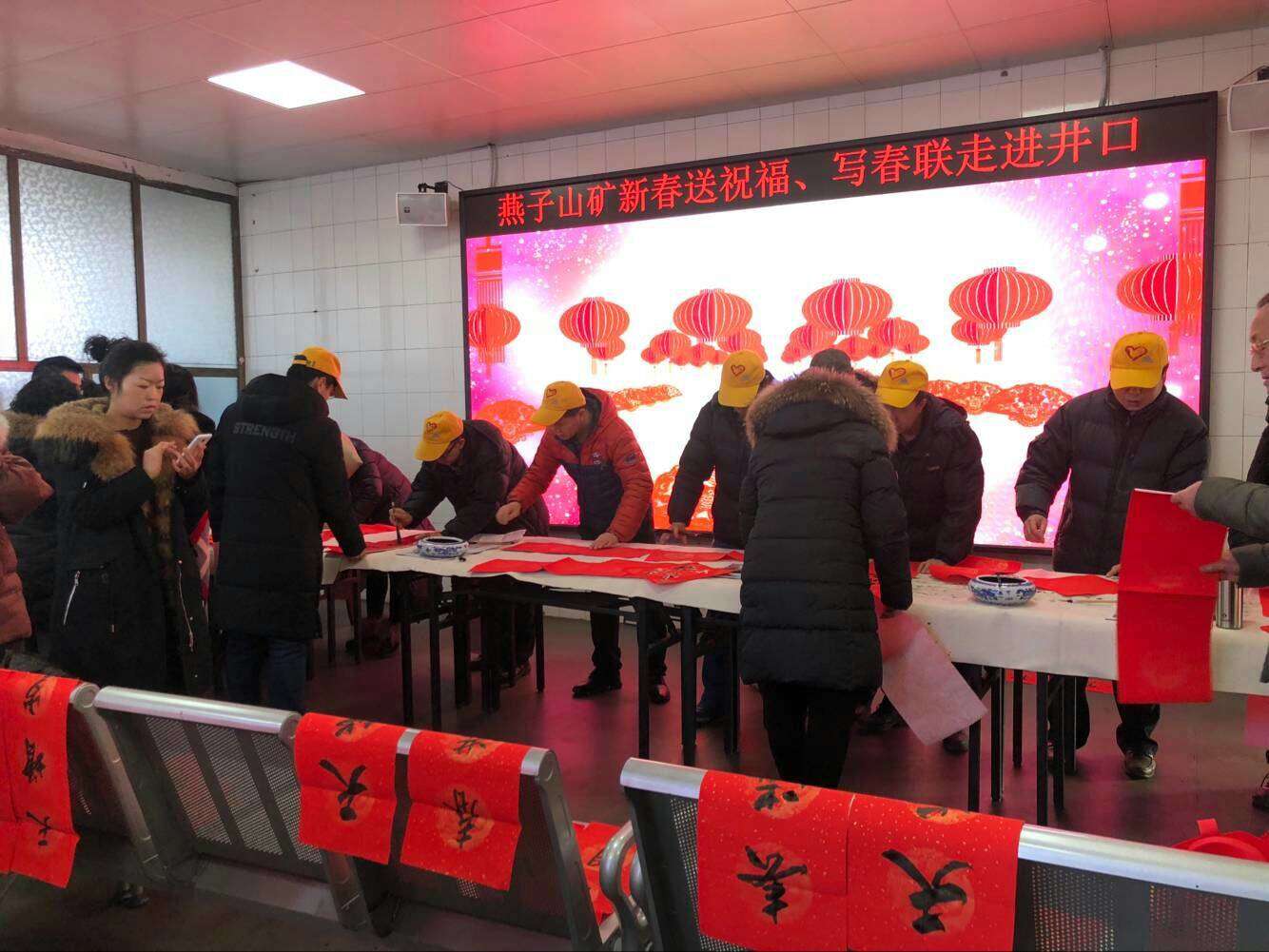 春节临近,年味儿渐浓。2月1日,同煤集团燕子山矿文委联合团委、老龄委组织青年志愿者和书法爱好者们,深入井口候罐大厅、灯房门前等地点开展“欢天喜地过大年、墨香四溢庆新春”为主题的青年志愿者义务书写春联活动。