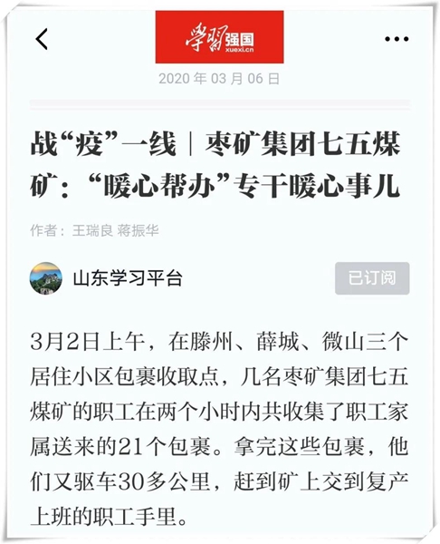 疫情期间枣矿11篇新闻登上“学习强国”,影响广反响好