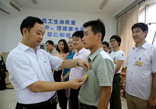 淄矿集团唐口煤业公司新增16名心理咨询师 来源:淄矿集团唐口煤业公司 作者:郭新立 张继涛 时间:2014-08-18 【字体:小 大】 8月14日,山东能源淄矿集团唐口煤业公司党群部部长王德军为16名心理咨询师佩戴三级心理咨询师证胸牌。 山东能源淄矿集团唐口煤业公司不断补充员工心理咨询师,集中在2月至4月份的业余时间,对区队党支部书记、车间工会主席、机关政工人员共21人进行了第二届心理咨询师培训班。他们系统学习了《基础心理学》《社会心理学》等8门专业课程,近日经过参加全国统一鉴定考试,有16名学员顺利通过。 心理咨询师展示三级心理咨询师证胸牌 智能标签: 淄矿集团 唐口煤业公司 相关内容 分享到: 【打印正文】