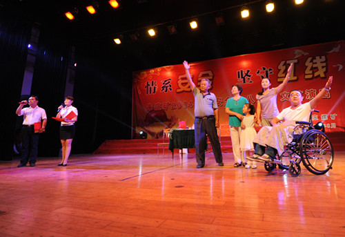 8月26日下午,安徽淮北矿业集团朱庄煤矿职工礼堂歌声悠扬,舞姿翩翩,情系安全,坚守红线2014年安全七八九安全主题文艺演出正在精彩上演。歌舞、情景剧、快板、小品等节目精彩纷呈,表达了矿区职工家庭呼唤安全,关注安全,关爱生命的美好愿望,洋溢着浓浓的安全亲情氛围。