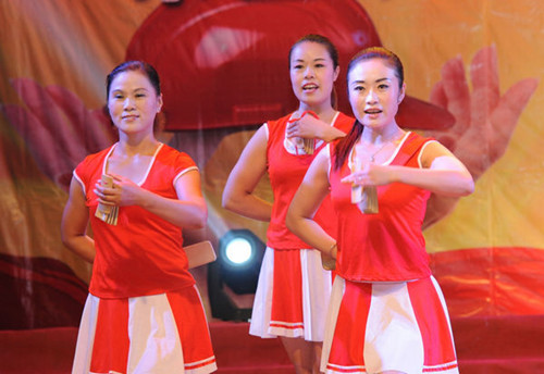 该矿本场安全文艺演出节目均为职工自编自演,类别丰富,歌舞优美,令人赏心悦目,为在场观众献上了一台精彩纷呈的视听大餐,唱响了朱庄好声音,提振了职工的精气神,凝聚了攻坚克难的正能量。精彩的演出在歌伴舞《和谐中国》的悠扬歌声和优美舞姿中落下帷幕。 (摄影:韩荣)
