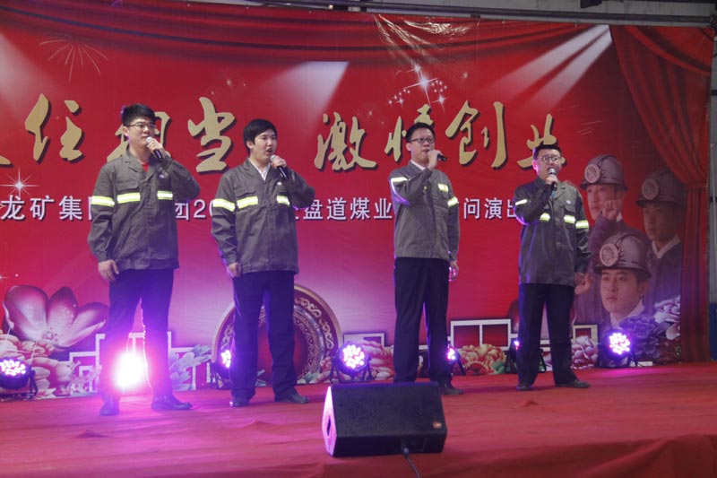 龙矿集团公司党政工领导为了把公司本部的心声传送给山西龙矿的每一位干部员工,把2015年的形势发展、双代会精神以及公司的规划目标宣贯给每一位干部员工,特地组织了这支精干的演出小分队,将心声融合在歌声中,融合在舞步里,融合在小品里,融合在快板书里带给驻外开发的干部员工们。为了使节目更精彩,小分队全体演职人员不辞辛劳,每到一矿都紧锣密鼓地装台、调试设备、筹备道具、周密组织、全情投入。利用装台这段时间,还专门组织在井口为上、下井的小班员工送上祝福,宣传了新《安全生产法》,叮嘱他们牢记安全,关爱生命健康。