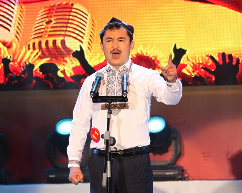 来自新疆新矿伊犁能源的维吾尔族选手麦尔丹在进行演讲