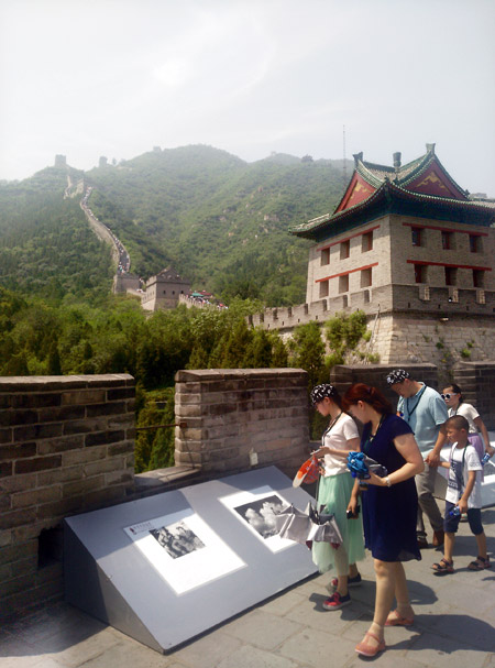 蜿蜒起伏的长城上,近百张抗战时期的老照片,吸引了众多游客驻足围观。许志强 摄