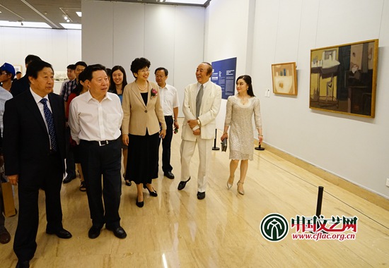 中国文联主席孙家正,中国文联党组书记、副主席赵实,中国侨联主席林军,北京市委常委、宣传部部长李伟,中国文联党组成员、副主席夏潮,中国文联党组成员、书记处书记陈建文,外交部行政司司长孙霖江,北京大学常务副校长吴志攀,全国政协常委、中国美协名誉主席靳尚谊,中国文联副主席、中国美协主席刘大为,中国美术馆馆长、中国美协副主席吴为山,中宣部文艺局副巡视员李晓红等出席开幕式。中国美协分党组副书记、秘书长徐里主持开幕式。