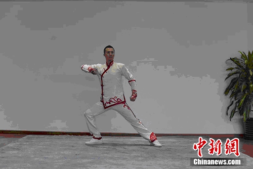 窦晓璇说:“我们‘戏曲广播体操’中的弓箭步都是幅度比较小的那种,像我们是整个身体要塌下去的。片腿也不可能像演员们踢到头顶上那种。”