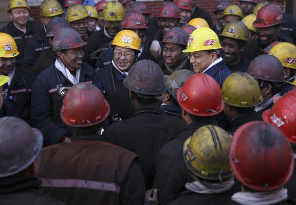 在满脸黝黑的矿工人丛中,总理紧紧握着他们的手说:“你们自己常年在黑暗的井下工作,却照亮了他人。有人说你们是煤黑子,我说你们是煤亮子。煤炭工人不仅是山西的脊梁,也是国家的脊梁。”