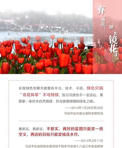 “人民对美好生活的向往就是我们的奋斗目标。”无论是育美花,还是摒“镜花”,为的都是这一庄严承诺。这正是习近平“花”之喻的深意。