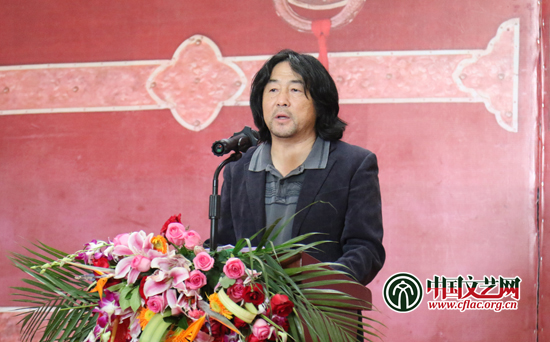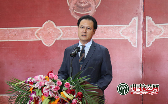 8月21日,“喜迎党的十九大——第十届西藏珠穆朗玛摄影展”开幕式在民族文化宫举行。图为中国文联党组成员、副主席李前光在开幕式上讲话。