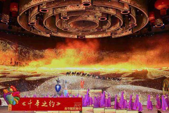 在2017年中央电视台春节联欢晚会亮相的这首《千年之约》由陈涛作词、王备作曲、韩红演唱,歌词意境优美,曲风婉转悠扬。这首歌传达着“一带一路”促进共同发展、实现共同繁荣的战略精神。