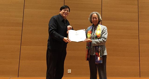 国家图书馆馆长韩永进代表国家图书馆接受捐赠并向阮援朝女士颁发捐赠证书