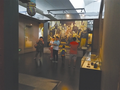 在首都博物馆展厅内,参观者在展示老北京生活场景的展厅内拍照,这样的场景式展示形式,让参观者有身临其境之感(本报记者 赵昂/摄)