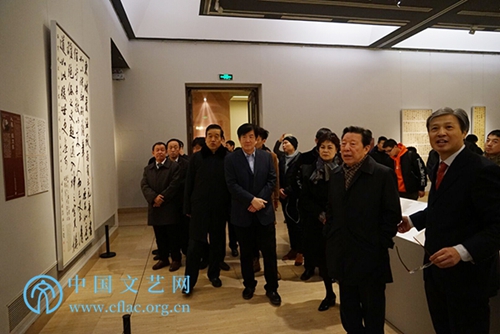 中国文联名誉主席孙家正,中国文联主席、中国作协主席铁凝,中国文联党组书记、副主席李屹,中国文联党组成员、副主席赵实,中国文联党组成员、副主席左中一、李前光、郭运德等出席开幕式并参观展览。