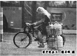 雨中送水工 (潘文峰/摄)