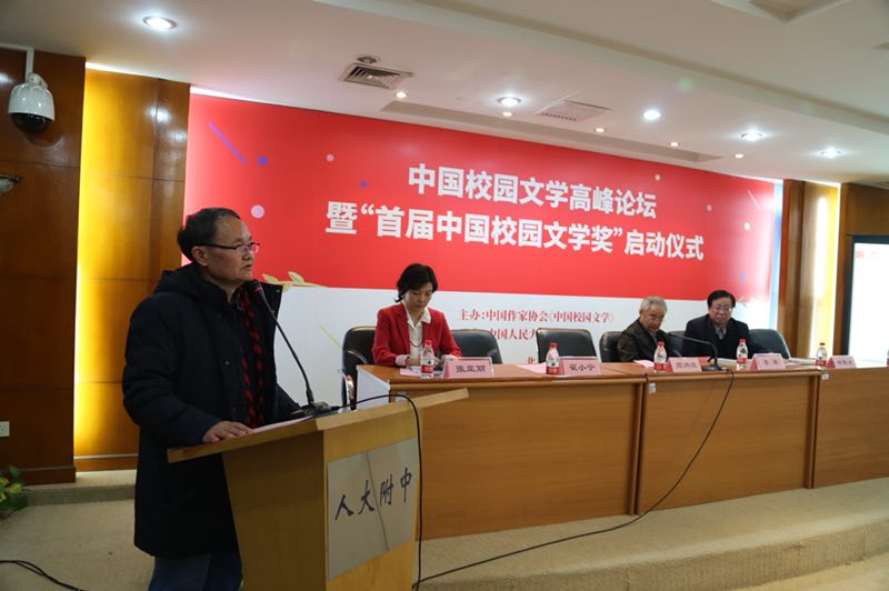 为推动中国校园文学的健康发展,3月23日,中国作家协会下属的《中国校园文学》杂志联合中国人民大学附属中学举办的“中国校园文学高峰论坛暨‘首届中国校园文学奖’启动仪式”在京举行。