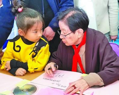 谷建芬为孩子签名送书 (本报记者刘勇/摄/光明图片)