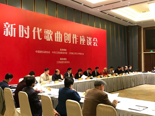 由中国音协、江苏省委宣传部、江苏省文联主办,江苏省音协承办的新时代歌曲创作座谈会4月9日在江苏省南京市举行。座谈会深入学习贯彻习近平新时代中国特色社会主义思想和党的十九大精神,进一步突出以人民为中心的创作导向,聚焦新时代的伟大实践,强调要切实加强现实题材创作,努力推出一批“讴歌党、讴歌祖国、讴歌人民、讴歌英雄”的精品力作。这是中国音协继2015年在京召开全国音乐创作座谈会之后,为大力推动新时代歌曲创作而举办的又一次音乐创作专题座谈会。