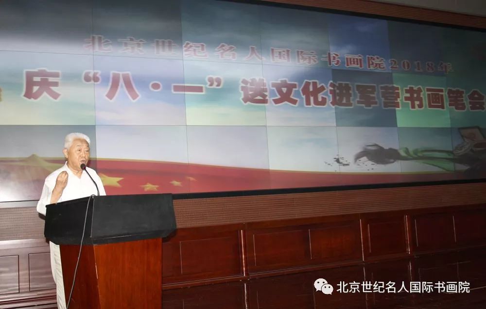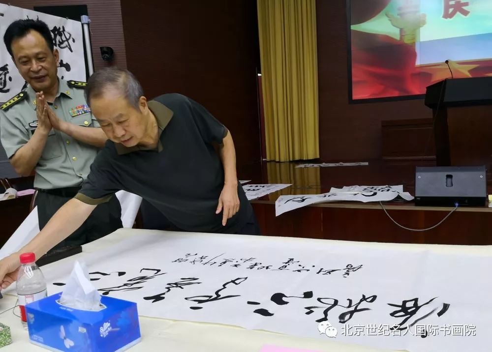 7月26日上午,86岁高龄的第三届中国书法家协会理事、中国煤矿文联原主席、北京世纪名人国际书画院副院长梁东带领该院书画家一行12人专程来到位于京郊的驻京某部,开展送文化进军营活动,与部队官兵一道,喜迎中国人民解放军建军91周年,受到部队全体官兵的热烈欢迎。86岁高龄的著名科学家、中国工程院院士吴慰祖参加活动。