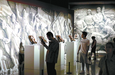 展览中最广为人知的展品,就是刘开渠为人民英雄纪念碑创作的大型浮雕《胜利渡长江》《支援前线》《欢迎解放军》的人像定型原模。人民英雄纪念碑浮雕是新中国最为重要的美术工程项目之一,刘开渠为其创作的三块浮雕是他最有影响力的代表作品,其风格延续中国古代雕塑艺术传统,融合西洋写实手法。展览还展出了《淞沪抗日阵亡将士纪念碑》《周恩来总理像》《蔡元培胸像》《梅兰芳坐像》等作品。