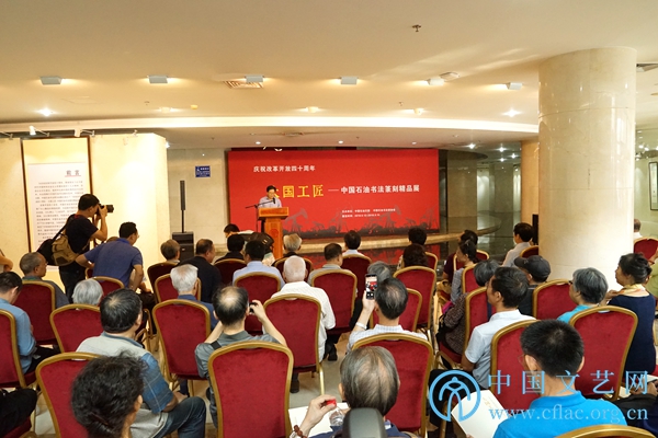 9月12日,“庆祝改革开放四十周年·大国工匠——中国石油书法篆刻精品展”开幕式在京举行。图为开幕式现场。
