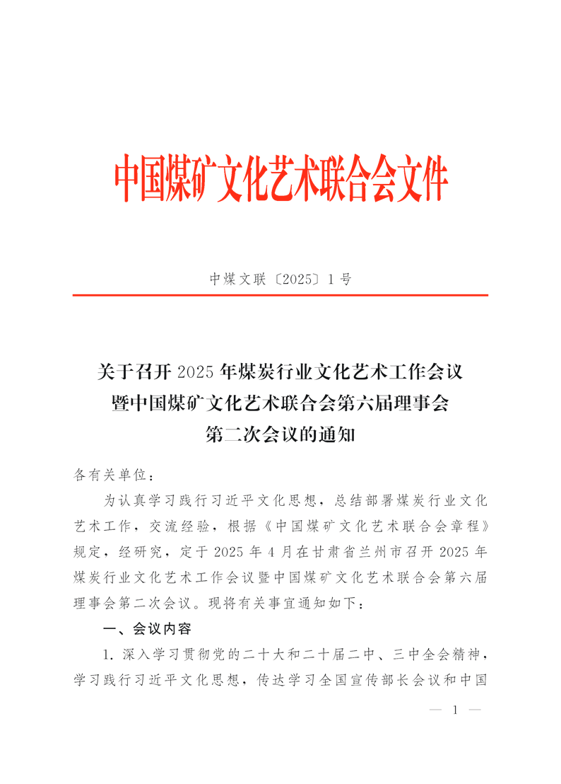 关于召开2025年煤炭行业文化艺术工作会议暨中国煤矿文化艺术联合会第六届理事会第二次会议的通知 来源:中国煤矿文联 作者: 时间:2025-03-28 【字体:小 大】 ▲ 扫码或点击在线反馈参会回执 分享到: 【打印正文】