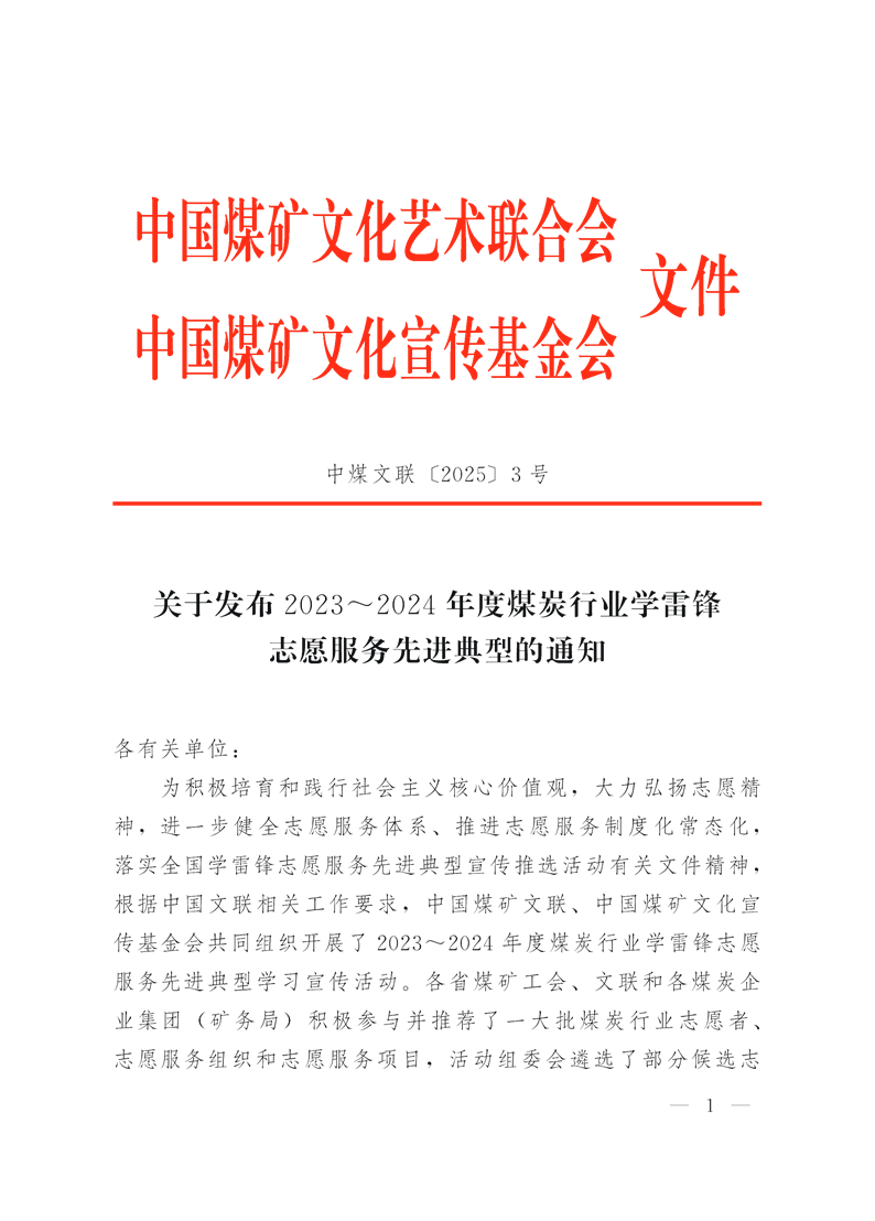 关于发布2023-2024年度煤炭行业学雷锋志愿服务先进典型的通知