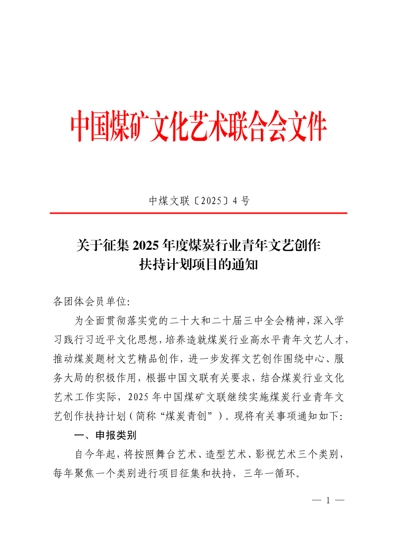 关于征集2025年度煤炭行业青年文艺创作扶持计划项目的通知 来源:中国煤矿文联 作者: 时间:2025-06-06 【字体:小 大】 附件2:2025年度煤炭行业青年文艺创作扶持计划项目申报表 分享到: 【打印正文】