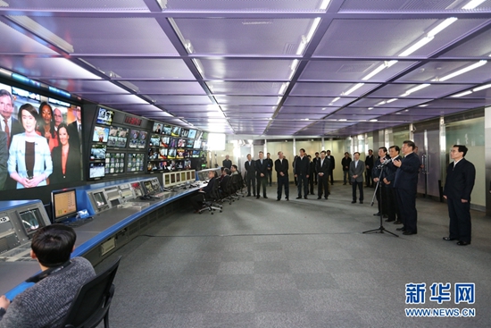 临近中午,习近平来到中央电视台。他听取中央电视台板块业务、媒体融合等情况介绍,到总控中心观看电视传播能力建设视频展示,在《新闻联播》演播室、导控室向主持人和工作人员了解新闻制作导播流程,并亲自切换按钮体验模拟播出。习近平指出,中央电视台每天面对数亿观众,一定要紧跟时代、放眼全球,多设计一些融思想性、艺术性于一体的好栏目,多创办一些脍炙人口、寓教于乐的好节目。