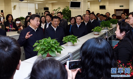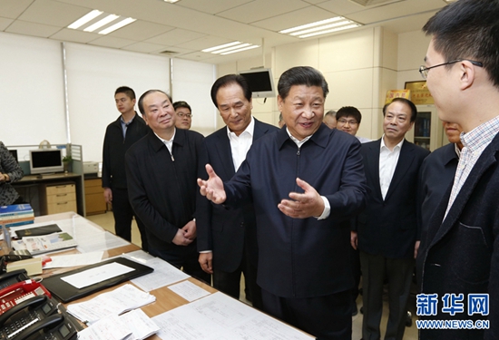 在新闻信息发稿中心,习近平通过视频同正在河南兰考县采访的新华社记者连线。记者向总书记汇报采访中看到的基层干部转变作风新面貌,习近平鼓励记者多深入基层、深入群众,及时发现和宣传基层干部先进典型。看了新华丝路数据库、中国照片档案馆数据管理系统等新闻信息产品展示,习近平点击手机屏幕,通过新华社客户端为全国新闻工作者点赞。在国内部,一位刚从河北正定县“走基层”回来的记者向总书记汇报塔元庄村的新变化,习近平请他转达对乡亲们的问候。习近平还走进国际部、参编部等工作平台,同一线编辑记者交流,向大家表示慰问。
