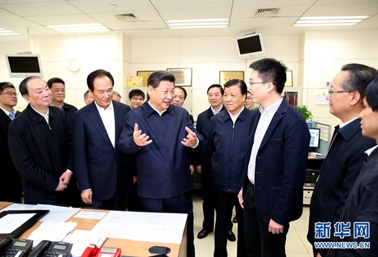 19日上午,习近平首先来到人民日报社调研。编辑楼内,一块块展板、一幅幅照片展示了党中央对人民日报的关怀,反映了人民日报社走过的不平凡历程。习近平一边观看,一边听汇报,他充分肯定人民日报创刊68年来为党和人民事业作出的重要贡献。在总编室夜班平台,习近平看编辑排版,同大家亲切交流,勉励他们不忘初衷、坚定信念,把报纸办得更好,为全国人民提供更多更好的精神食粮。习近平走进新媒体中心,在大屏幕前听取微博、微信、客户端工作介绍,并在一台电脑前坐下,通过新媒体平台发送语音信息,向全国人民致以元宵节的问候和祝福。