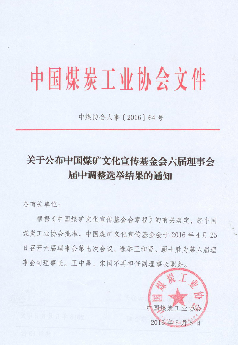 关于公布中国煤矿文化宣传基金会六届理事会届中调整选举结果的通知