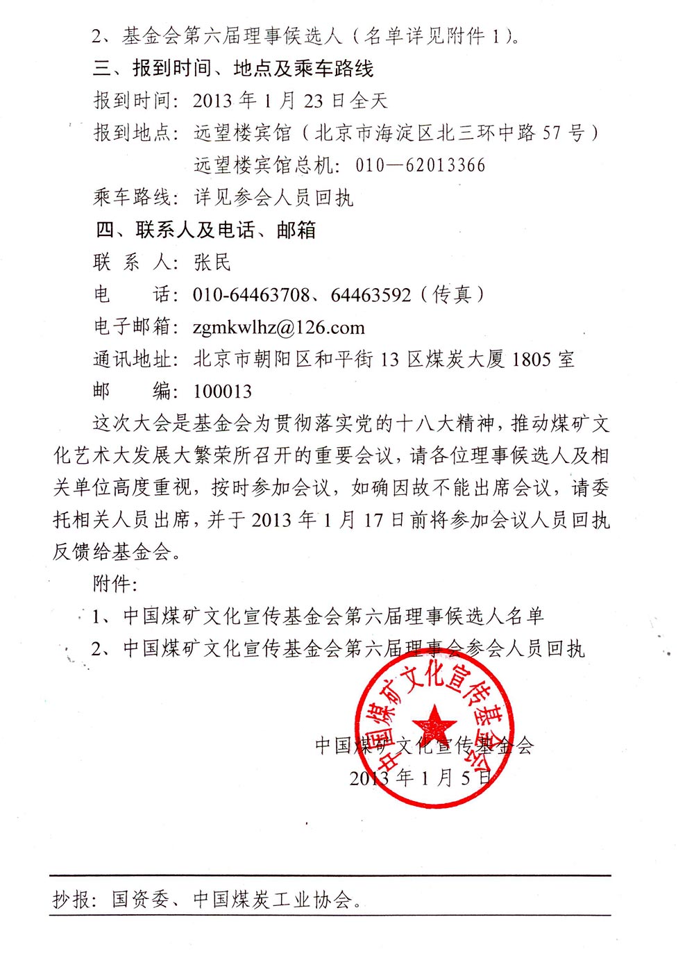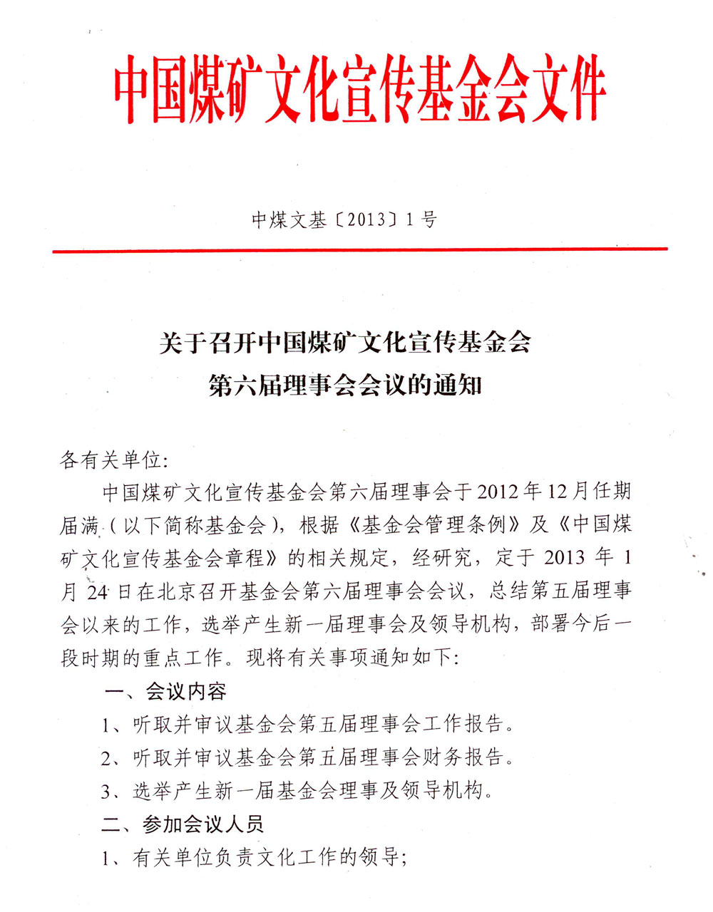 关于召开中国煤矿文化宣传基金会第六届理事会会议的通知