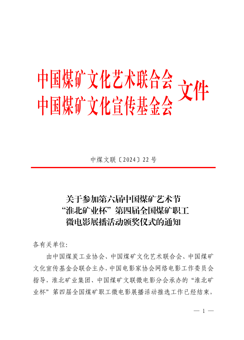 关于参加第六届中国煤矿艺术节“淮北矿业杯”第四届全国煤矿职工微电影展播活动颁奖仪式的通知