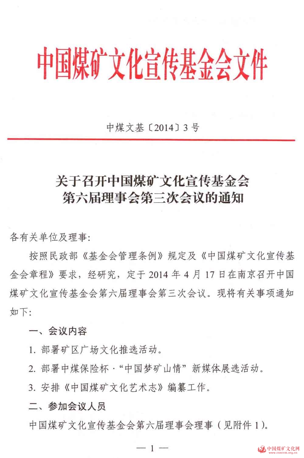 关于召开中国煤矿文化宣传基金会第六届理事会第三次会议的通知