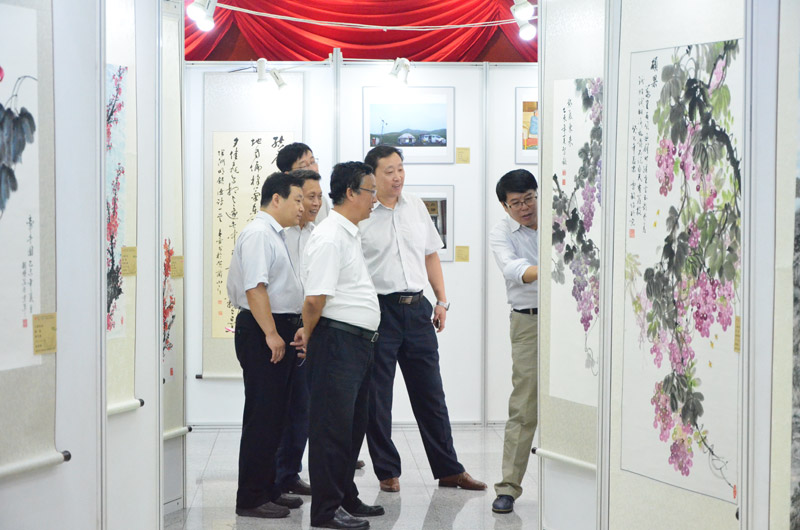 参加开幕式的领导观看展览作品