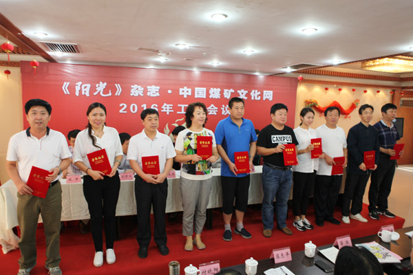 会上,刘万义宣读了2016年度《阳光》杂志编务工作和全国煤矿文化网络宣传先进单位和先进个人名单,与会领导向各先进单位和个人代表颁发了获奖证书。河南神火集团政工部部长王启、山东能源枣矿集团蒋庄煤矿工会办公室主任刘仍索分别代表获奖单位和个人表态发言。