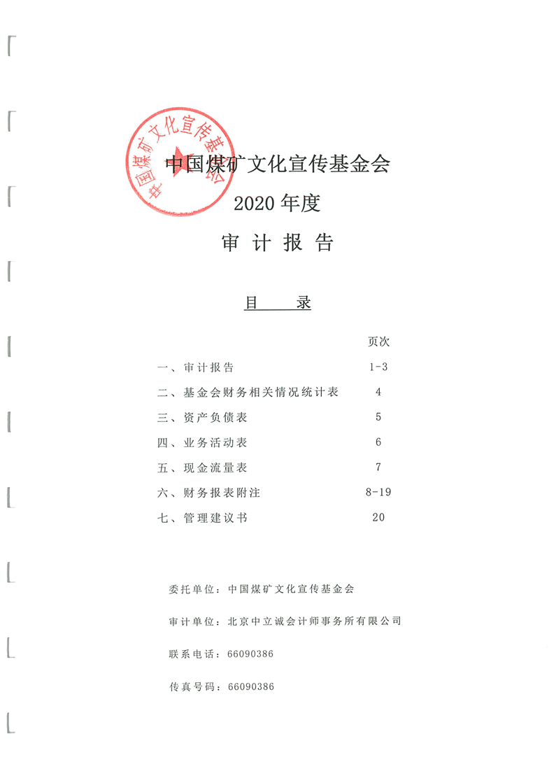 中国煤矿文化宣传基金会2020年度审计报告